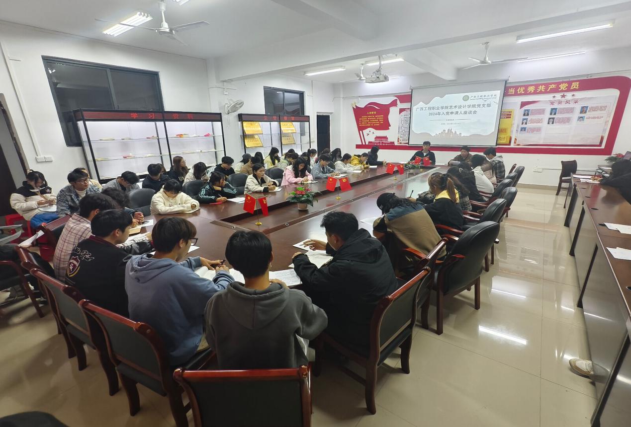 2024年12月18日晚上,藝術(shù)設(shè)計學(xué)院黨支部在學(xué)院三樓黨員活動室召開2024年下半年入黨申請人座談會。學(xué)院黨支部副書記趙志輝、宣傳兼統(tǒng)戰(zhàn)委員曹遠翔出席了本次座談會,與入黨申請人進行了交流。此次座談會旨在深入了解入黨申請人的思想動態(tài)、政治覺悟及入黨動機,為黨組織把好黨員入口關(guān)。