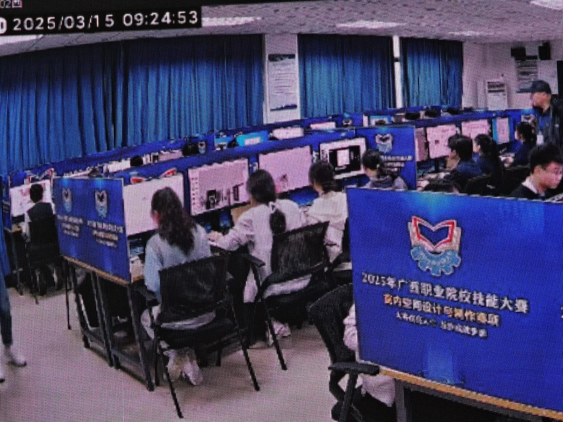 圖為2025年廣西職業(yè)院校技能大賽高職組室內(nèi)空間設(shè)計與制作賽項開幕式現(xiàn)場