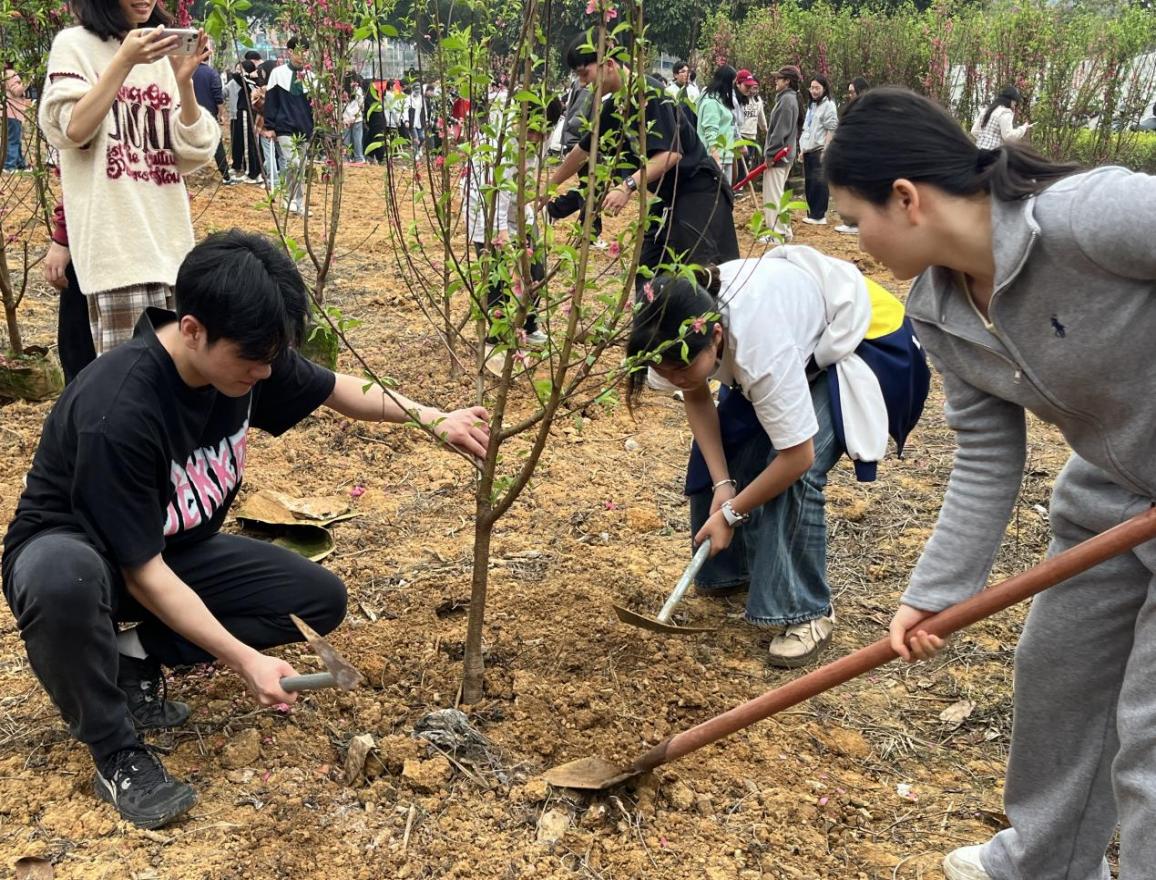 藝術(shù)設(shè)計學(xué)院黨支部書記、院長覃鳳姣在活動中表示:“植樹不僅是綠化行動,更是一堂生動的生態(tài)文明實踐課。希望師生們以此次活動為契機,將環(huán)保意識融入專業(yè)學(xué)習(xí)和生活日常,用藝術(shù)的力量倡導(dǎo)低碳生活,共建綠色家園。”她強調(diào),作為藝術(shù)設(shè)計領(lǐng)域的師生,更應(yīng)肩負(fù)起傳播生態(tài)理念的責(zé)任,讓藝術(shù)創(chuàng)作與環(huán)保實踐相得益彰。