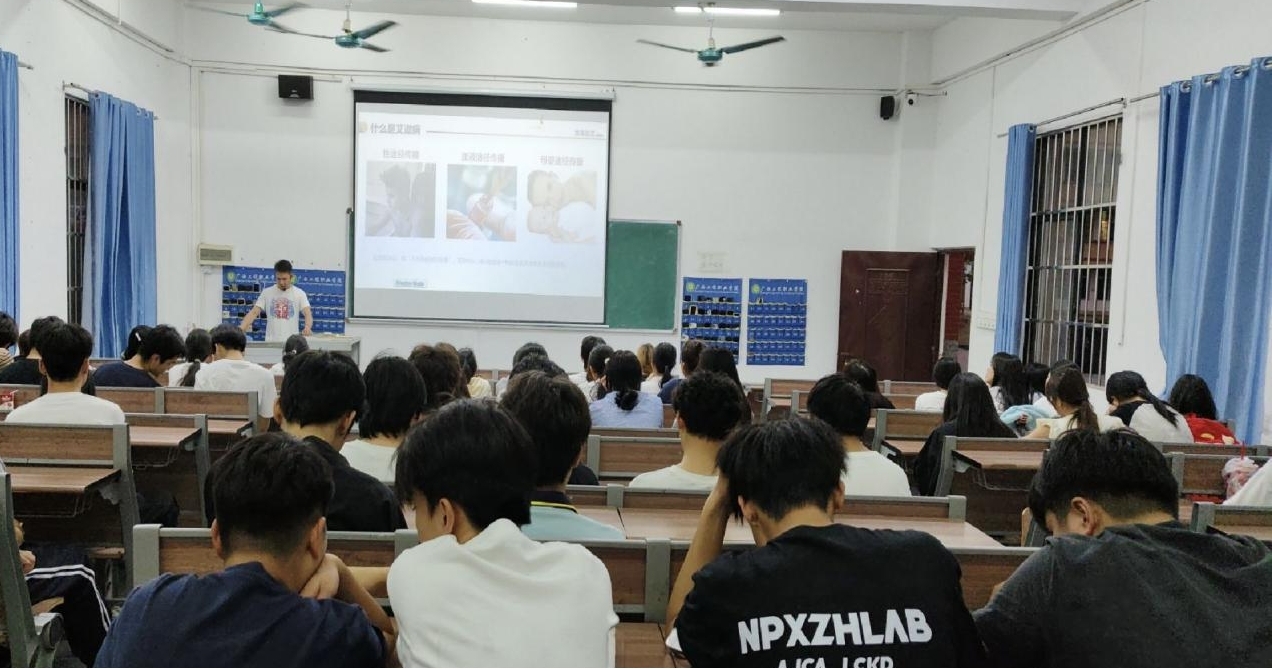 圖為黃玉瑩老師為2024級(jí)美容美體藝術(shù)專業(yè)和建筑設(shè)計(jì)專業(yè)進(jìn)行禁毒和防艾知識(shí)講解