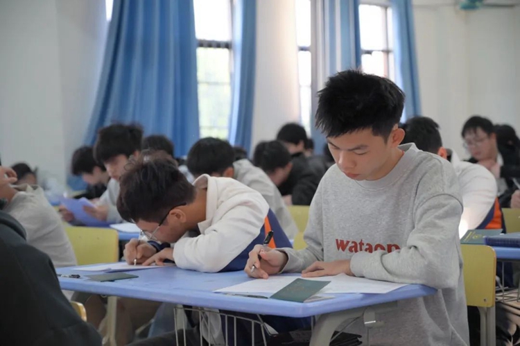 秩序井然的考場內(nèi),同學(xué)們沉著冷靜,周密思考,奮筆疾書。鯤鵬之志,盡在揮毫指間彰顯!