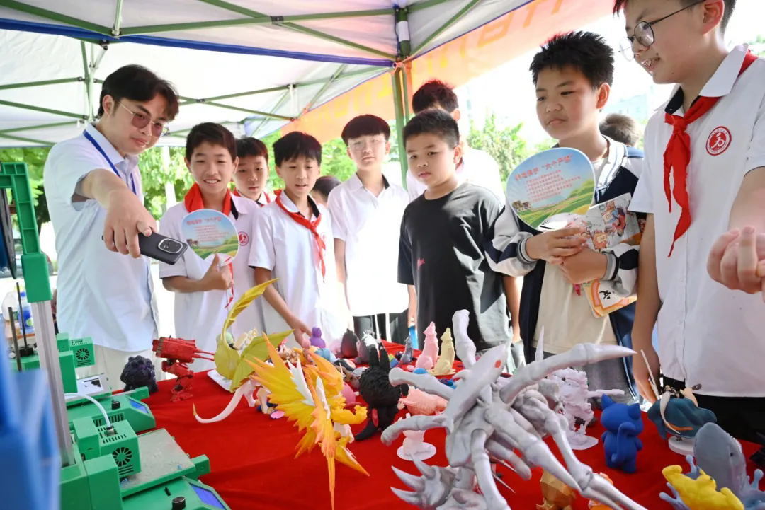 3D打印展區(qū)宛如一座 “科技魔法工坊”,特別為小學(xué)生群體設(shè)計(jì)了趣味十足的互動(dòng)體驗(yàn)環(huán)節(jié)?,F(xiàn)場(chǎng)不僅陳列著孩子們熟悉的各類小物件——如3D打印制成的卡通玩偶、迷你文具、小動(dòng)物模型等,專業(yè)教師與學(xué)生志愿者還會(huì)手把手帶領(lǐng)大家 “探秘”3D打印的原理與過(guò)程,讓科技體驗(yàn)更具參與感。