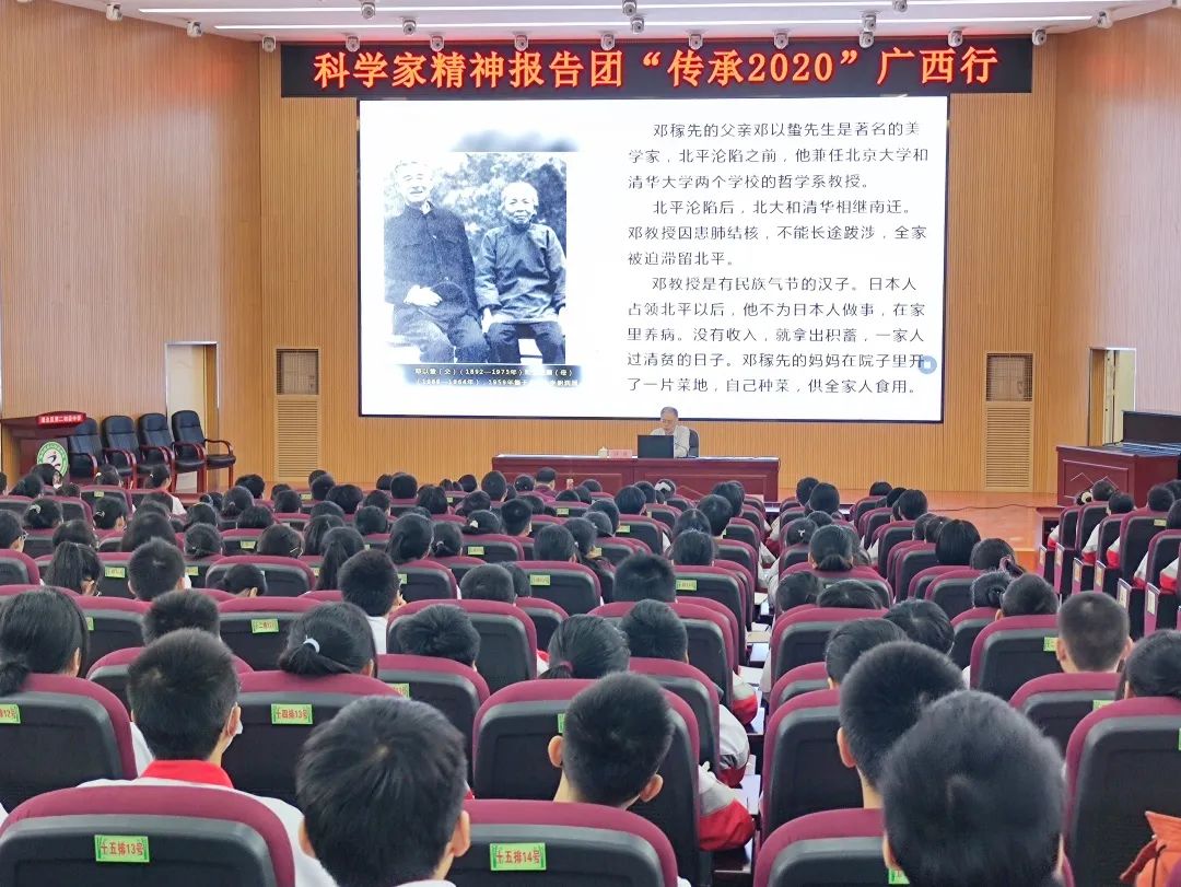 為進(jìn)一步擴(kuò)大活動(dòng)覆蓋面和影響力,廣西科技館還聯(lián)合中國科協(xié)科學(xué)技術(shù)傳播中心等單位,開展科學(xué)家精神報(bào)告團(tuán)“傳承2020”廣西行活動(dòng)。11月25~26日,活動(dòng)先后來到貴港市和河池市,為當(dāng)?shù)?所學(xué)校共計(jì)2500多名師生講述關(guān)于老一代科學(xué)家的動(dòng)人故事。