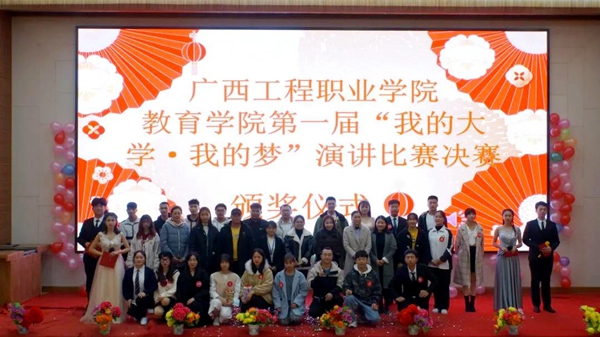 2020年12月23日晚,我校教育學(xué)院第一屆“我的大學(xué),我的夢(mèng)”大學(xué)生主題演講比賽決賽在圖文信息大樓報(bào)告廳舉行。來自各二級(jí)學(xué)院15名同學(xué)參加了本次角逐。教育學(xué)院副院長(zhǎng)梁善雅出席比賽現(xiàn)場(chǎng)并致辭,黃能、凌玲、盧燕梅、梁玉瑩等老師擔(dān)任比賽評(píng)委,來自各學(xué)院的師生代表、各學(xué)生社團(tuán)代表等前來觀看比賽。