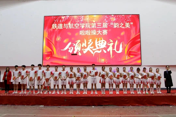 為豐富校園文化,不斷提高同學(xué)們的綜合素質(zhì),營(yíng)造和諧向上的校園文化氛圍,我校鐵道與航空學(xué)院于2020年12月25日在體育館舉辦第三屆“韻之美”大學(xué)生啦啦操比賽。學(xué)校副校長(zhǎng)彭高彬,鐵道與航空學(xué)院副院長(zhǎng)覃清香、辦公室主任羅丹出席本次大賽。學(xué)工處副處長(zhǎng)吳發(fā)德,形體課專業(yè)教師謝錫潔、王珺珊、梁永艷等7位老師應(yīng)邀擔(dān)任大賽評(píng)委。本次啦啦操大賽的參賽隊(duì)員主要來自鐵道與航空學(xué)院和教育學(xué)院的11支隊(duì)伍。
