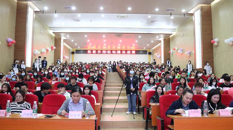 為進(jìn)一步繁榮校園文化,豐富同學(xué)們的課余生活,11月12日晚,我校教育學(xué)院在圖文信息大樓報(bào)告廳舉行啦啦操選拔賽,學(xué)院共有13支參賽隊(duì)伍參加了選拔。教育學(xué)院黨支部書記盧燕梅、教育學(xué)院副院長(zhǎng)梁善雅及學(xué)院20級(jí)、21級(jí)輔導(dǎo)員出席比賽現(xiàn)場(chǎng),學(xué)校各個(gè)社團(tuán)代表及教育學(xué)院學(xué)生代表觀看比賽。