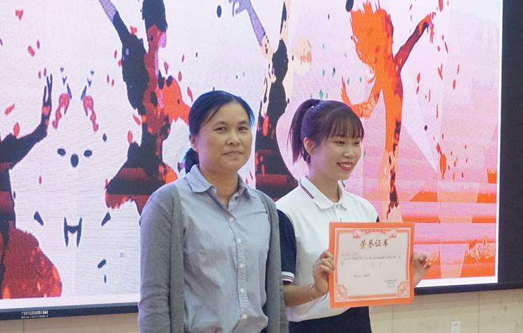 農(nóng)淑娟老師為榮獲三等獎(jiǎng)的隊(duì)伍頒獎(jiǎng)