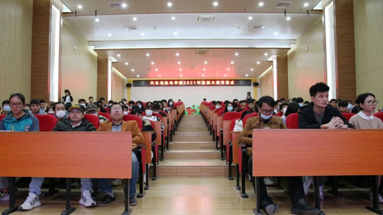 11月30日18:30,汽車與機電學(xué)院在圖文信息大樓報告廳舉行2021年技能大賽開幕式,學(xué)院副院長梁欣欣、辦公室主任陸心含、學(xué)生科長楊小櫻,比賽評委,參賽人員及師生代表參加了開幕式。