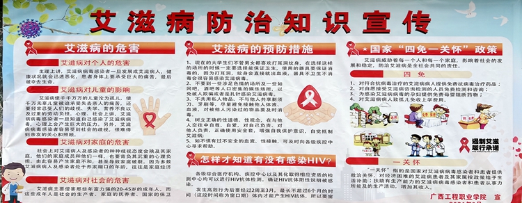 12月1日是第34個(gè)世界艾滋病日,為進(jìn)一步宣傳和普及艾滋病防治和禁毒知識(shí),增強(qiáng)在校大學(xué)生防艾禁毒意識(shí)、自我保護(hù)意識(shí),提高大學(xué)生抵御艾滋病和識(shí)毒拒毒的能力,共建健康和諧文明的校園,我校在11月至12月期間開(kāi)展了“防艾禁毒宣傳月”主題系列活動(dòng)。
