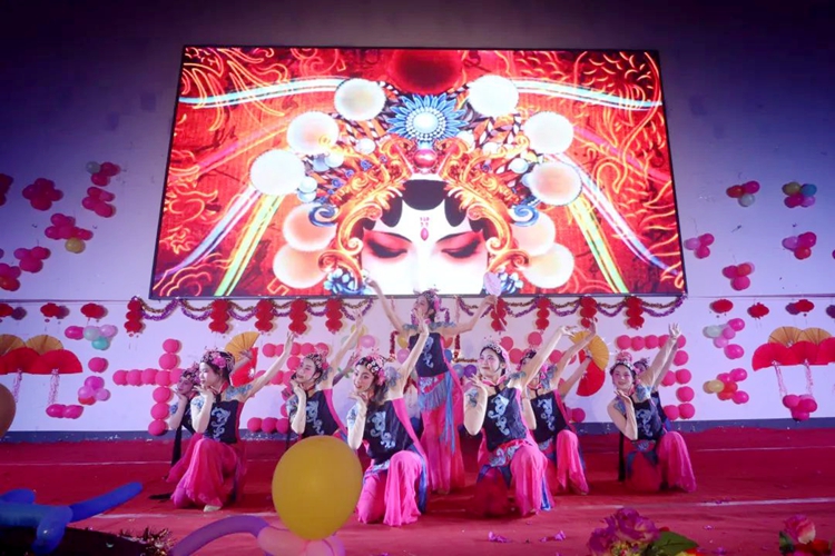 晚會上,精心編排的19個節(jié)目接連上演,全場觀眾不斷揮舞著手中的小國旗、校旗和熒光棒,沉浸在校慶晚會無比歡快的氛圍中。