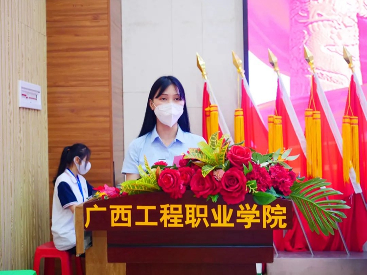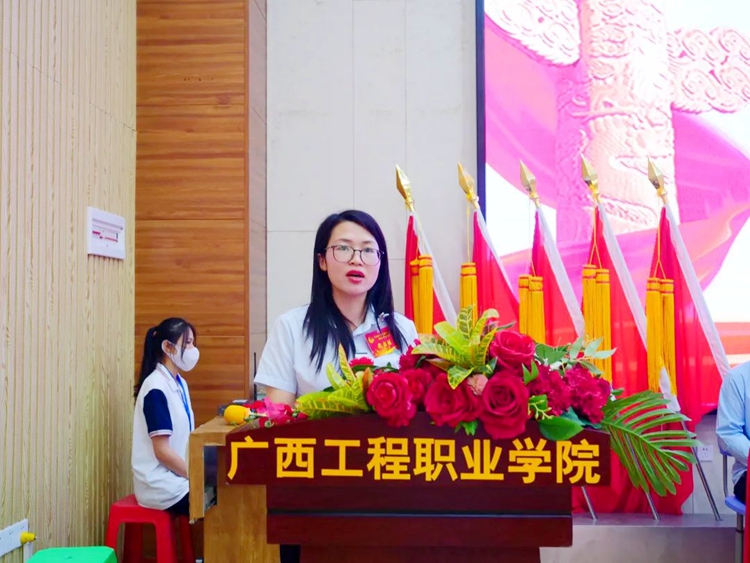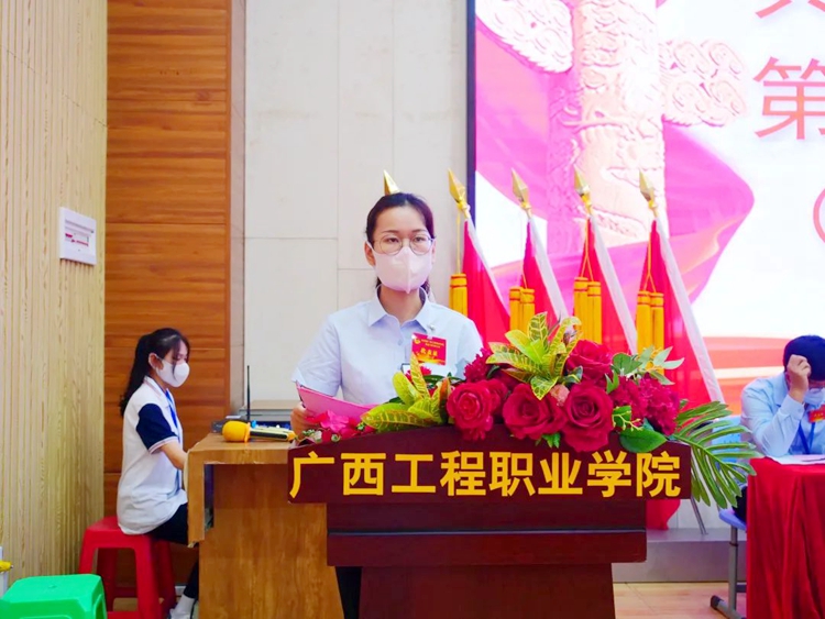 2022年4月28日,共青團廣西工程職業(yè)學院第五次代表大會在圖文信息大樓一樓學術報告廳舉行。共青團平果市委員會書記陸妍君,學校黨委副書記黃秋霞,學校黨委委員、經(jīng)濟管理學院院長龐英連,學校黨委委員、學生工作處副處長李麗詩,鐵道與航空學院黨支部書記、院長覃鳳姣,黨委辦公室副主任黃香琴,汽車與機電學院副院長梁欣欣,思政課教學部副主任吳發(fā)德,國防科技學院副院長李捷,土木工程學院副院長楊竟,土木工程學院分團委書記陳春任,汽車與機電學院分團委書記楊小櫻,鐵道與航空學院分團委書記謝小玲、藝術設計學院分團委書記龍金妹、教育學院分團委書記盧燕梅、校團委黃詩晴,以及第五屆團委委員候選人出席了此次大會。大會由校團委書記梁鳳琴主持。