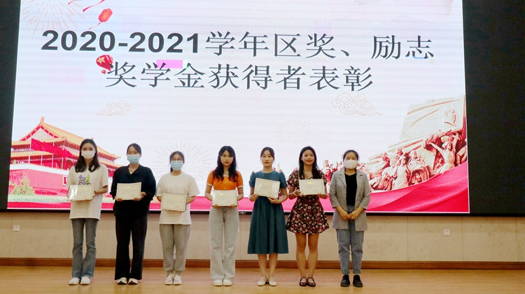 分團委書記盧燕梅為榮獲自治區(qū)人民政府獎學(xué)金的學(xué)生頒獎