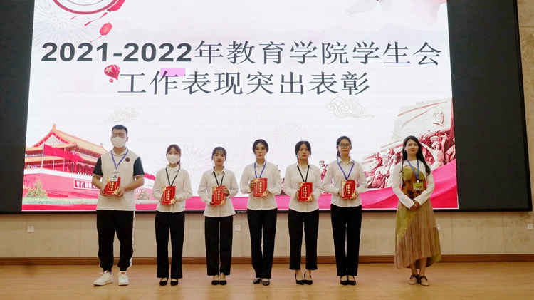 2022年5月12日晚上19:00,教育學(xué)院2021—2022年度表彰大會在圖文信息大樓一樓學(xué)術(shù)報告廳舉行。學(xué)校副校長林萌,教育學(xué)院院長梁善雅,教育學(xué)院辦公室主任吳棉、學(xué)生科科長兼分團委書記盧燕梅出席表彰大會,教育學(xué)院師生代表參加大會。