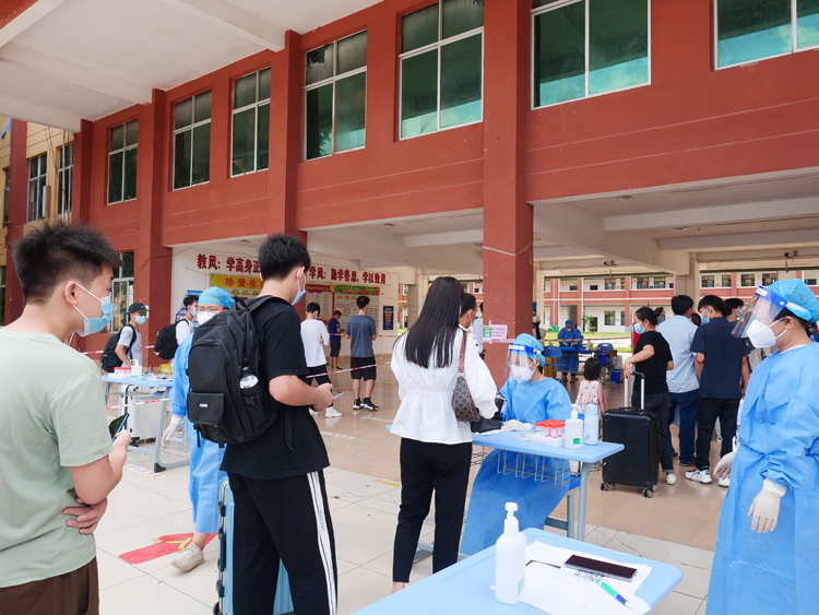 返校期間,每位學(xué)生都嚴(yán)格遵守學(xué)校疫情防控工作,積極配合,在校門口進(jìn)行掃碼測(cè)溫、行李消殺、返校相關(guān)材料核驗(yàn)、報(bào)到注冊(cè)等,順利進(jìn)入校園,并有序排隊(duì)進(jìn)行核酸檢測(cè),安全返回宿舍。