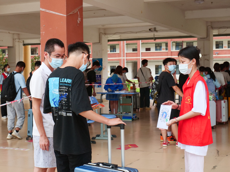 為切實(shí)保障學(xué)生平安順利返校,學(xué)校高度重視學(xué)生返校工作,此前多次召開(kāi)了2022年秋季學(xué)期學(xué)生返校工作布置會(huì),要求學(xué)生做好自我監(jiān)測(cè)、每日健康打卡、返校前48小時(shí)內(nèi)核酸檢測(cè)證明等,精準(zhǔn)掌握每位學(xué)生返校前14天的健康狀況和出行軌跡,嚴(yán)格落實(shí)返校后校園常態(tài)化疫情防控措施,確保學(xué)生安全返校、平穩(wěn)開(kāi)學(xué)。學(xué)生返校當(dāng)天,黨委副書記黃秋霞等校領(lǐng)導(dǎo)還親自來(lái)到報(bào)到現(xiàn)場(chǎng),檢查指導(dǎo)老生返校工作,慰問(wèn)各服務(wù)崗工作人員和志愿者。
