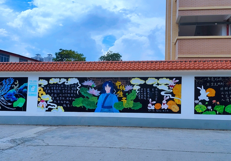 活動(dòng)中,各班級(jí)的同學(xué)們充分發(fā)揮自己的想象力和團(tuán)結(jié)合作的精神,把對(duì)中秋的節(jié)日祝福和對(duì)新生、新學(xué)期的美好祝愿,用一筆一劃勾勒在黑板上。