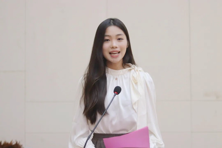 校廣播站播音部部長鮑嘉檸發(fā)言