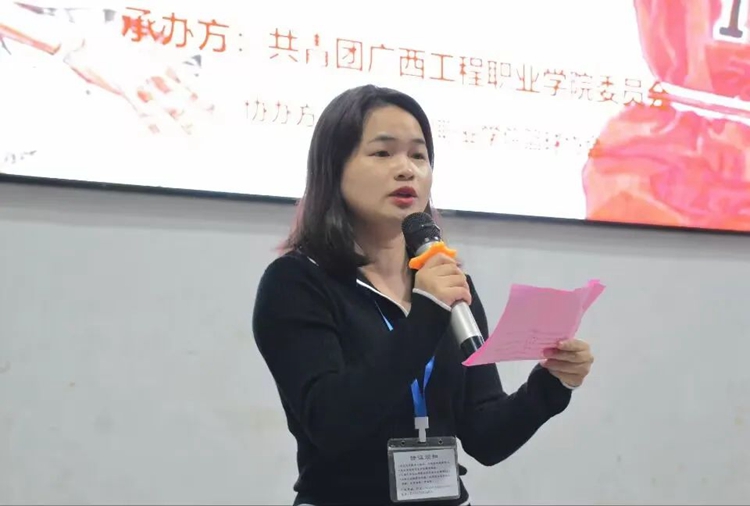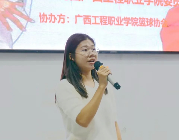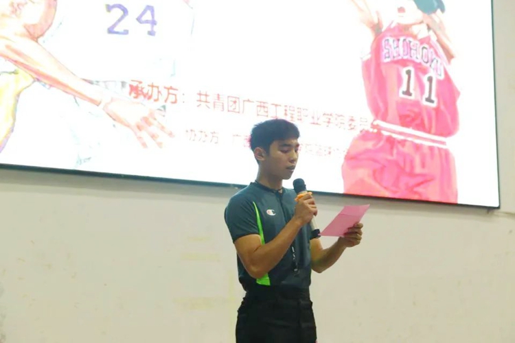 在全場(chǎng)人員的熱烈掌聲中,校團(tuán)委李鳳玲老師宣布:廣西工程職業(yè)學(xué)院2022年“新生杯”籃球賽正式開(kāi)幕!