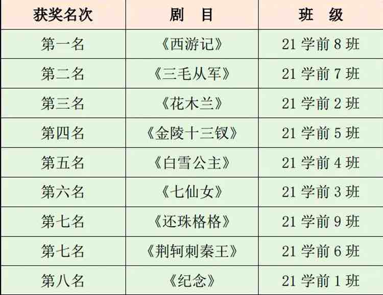 表演過程中,同學(xué)們的出彩表演,打動(dòng)了現(xiàn)場(chǎng)的觀眾,贏得了在場(chǎng)師生的陣陣掌聲。最后,21學(xué)前8班的情景劇《西游記》榮獲一等獎(jiǎng),21學(xué)前7班的情景劇《三毛從軍》榮獲二等獎(jiǎng),21學(xué)前2班的情景劇《花木蘭》榮獲三等獎(jiǎng)。