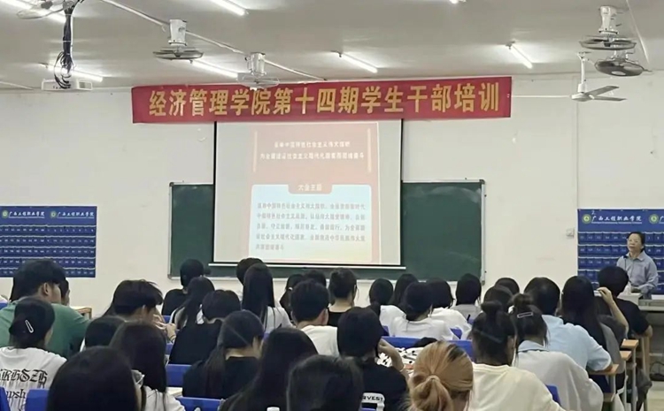 為深入學(xué)習(xí)貫徹習(xí)近平新時代中國特色社會主義思想和黨的二十大精神,扎實推進 “青年大學(xué)習(xí)”行動,引領(lǐng)廣大學(xué)生骨干自覺用馬克思主義中國化最新成果武裝頭腦、指導(dǎo)實踐,不斷提高經(jīng)濟管理學(xué)院學(xué)生骨干的思想政治素質(zhì)、政策理論水平、創(chuàng)新能力、實踐能力和組織協(xié)調(diào)能力,引導(dǎo)學(xué)生干部學(xué)習(xí)和掌握工作方法與技巧,培養(yǎng)學(xué)生干部良好的工作作風(fēng)和服務(wù)意識,2023年10月21日-10月24日,經(jīng)濟管理學(xué)院在實訓(xùn)大樓102教室進行第十四期學(xué)生干部培訓(xùn)。