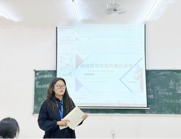 盧海娟老師作題為《新聞撰寫與宣傳意識(shí)》的專題培訓(xùn)。盧海娟老師講到嚴(yán)謹(jǐn)?shù)墓ぷ髯黠L(fēng)是學(xué)生干部所需具備的重要素質(zhì),它體現(xiàn)在新聞撰寫與宣傳的各個(gè)方面。從發(fā)掘新聞亮點(diǎn)和采訪過程中,鍛煉、提高學(xué)生干部的信息敏感性,增強(qiáng)學(xué)生干部的新聞宣傳意識(shí),從中培養(yǎng)其比較分析能力、汲取營養(yǎng)和新聞撰寫能力。