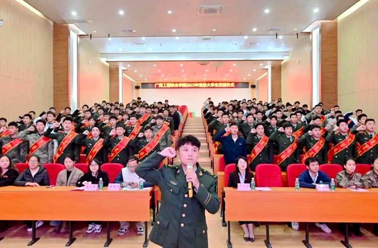 黨委副書(shū)記黃秋霞,副校長(zhǎng)黃德偉,黨委委員、學(xué)工處副處長(zhǎng)李麗詩(shī),學(xué)生工作處資助科科長(zhǎng)范玉翠,征兵工作站負(fù)責(zé)人陳國(guó)昇及各二級(jí)學(xué)院科長(zhǎng)出席儀式,國(guó)防科技學(xué)院師生代表參加儀式。