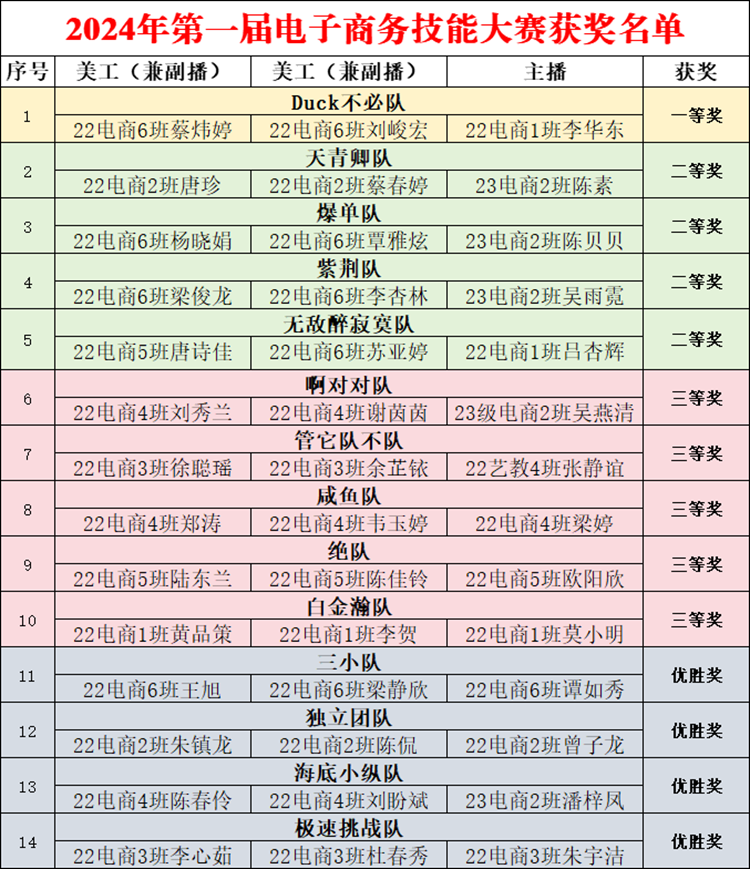 經(jīng)過激烈的比拼,各位參賽選手以提高電子商務(wù)專業(yè)技能為目的,賽出水平、賽出風(fēng)采,取得了優(yōu)異的成績。辦公室主任雷紅宣布第一屆電子商務(wù)技能比賽獲獎名單。