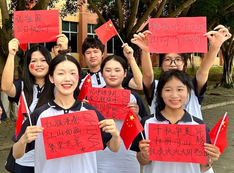 在充滿(mǎn)活力的校園里,每一抹中國(guó)紅都意義非凡,都厚植愛(ài)國(guó)情感和強(qiáng)國(guó)之志,推動(dòng)著我們踔厲奮發(fā),不斷向前,為實(shí)現(xiàn)中華民族偉大復(fù)興的中國(guó)夢(mèng),而努力奮斗。在中華人民共和國(guó)成立75周年之際,讓我們銘記歷史,珍惜當(dāng)下 展望未來(lái),用青春和汗水,書(shū)寫(xiě)屬于自己的“中國(guó)紅”篇章!