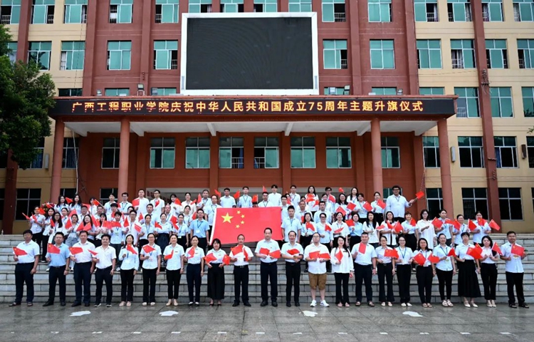為深入學(xué)習(xí)貫徹習(xí)近平新時(shí)代中國(guó)特色社會(huì)主義思想和黨的二十屆三中全會(huì)精神,加強(qiáng)愛(ài)國(guó)主義教育,激發(fā)廣大師生的愛(ài)國(guó)情、報(bào)國(guó)志,引導(dǎo)廣大師生在感悟中國(guó)共產(chǎn)黨人精神譜系、體悟中華人民共和國(guó)成立75周年光輝歷程中傳承紅色基因、賡續(xù)紅色血脈,10月1日,廣西工程職業(yè)學(xué)院在魯班廣場(chǎng)舉行慶祝中華人民共和國(guó)成立75周年“祖國(guó),我為您驕傲”主題升旗儀式。