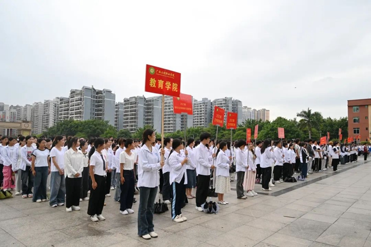 董事長(zhǎng)李益,黨委書(shū)記、督導(dǎo)專(zhuān)員蒙本曼,黨委副書(shū)記、校長(zhǎng)羅艷妮,副校長(zhǎng)黃德偉、蔣茂麗,校長(zhǎng)助理李明澤,校長(zhǎng)助理梁善雅及中層干部、師生代表參加升旗儀式。黨委副書(shū)記黃秋霞主持儀式。