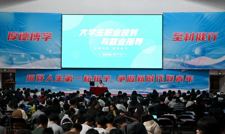 招生就業(yè)處科長韋潤萍作《大學(xué)生職業(yè)規(guī)劃與就業(yè)指導(dǎo)》專題講座。她通過大量典型案例,全面而深入地剖析了當前就業(yè)形勢。剖析內(nèi)容既包括熱門行業(yè)的動態(tài)發(fā)展趨勢,也對不同崗位必備技能與素養(yǎng)進行了詳細闡述,要點皆是精華,讓在場學(xué)子收獲頗豐。