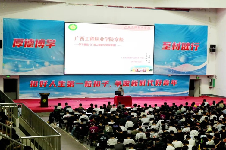 新生入學(xué)教育是大學(xué)生思想政治教育中的重要環(huán)節(jié),為貫徹落實立德樹人根本任務(wù),引導(dǎo)和幫助2024級新同學(xué)盡快適應(yīng)大學(xué)生活,樹立正確的理想信念,增強愛校榮校情感,提升遵紀守法意識、生命安全意識、專業(yè)學(xué)習(xí)能力和職業(yè)生涯規(guī)劃能力,做有理想、敢擔當、能吃苦、肯奮斗的新時代青年,2024年10月8日—10月31日,廣西工程職業(yè)學(xué)院在體育館組織開展2024級新生入學(xué)教育。