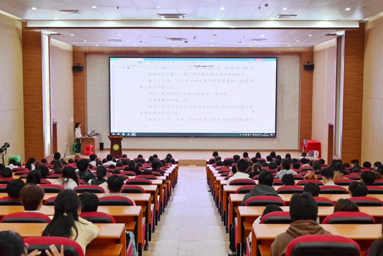 2024年12月4日是第11個(gè)國家憲法日,教育部組織開展2024年國家憲法日教育系統(tǒng)“憲法晨讀”活動。為進(jìn)一步弘揚(yáng)憲法精神,加強(qiáng)法治教育,學(xué)校在圖文信息大樓報(bào)告廳組織師生集中收看、同步參與國家憲法日“憲法晨讀”活動。