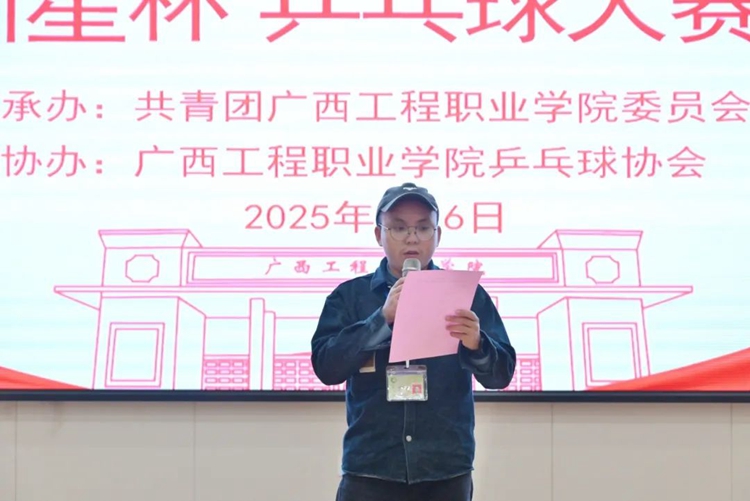 圖為乒乓球協(xié)會指導(dǎo)老師韋遠(yuǎn)安老師宣布獲獎名單