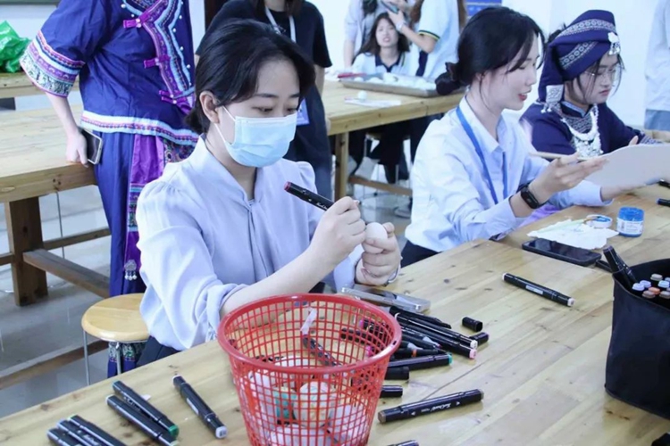 以“傳統(tǒng)+創(chuàng)意”雙主題繪制彩蛋:傳統(tǒng)主題圍繞艾草、龍舟等自然紋樣與吉祥符號(hào),融入青、紅、黃、白、黑五行色彩;創(chuàng)意主題則涵蓋Q版屈原、星空幾何等新穎元素,師生們還在彩蛋上書寫祝福語(yǔ),讓古老習(xí)俗煥發(fā)出青春活力。