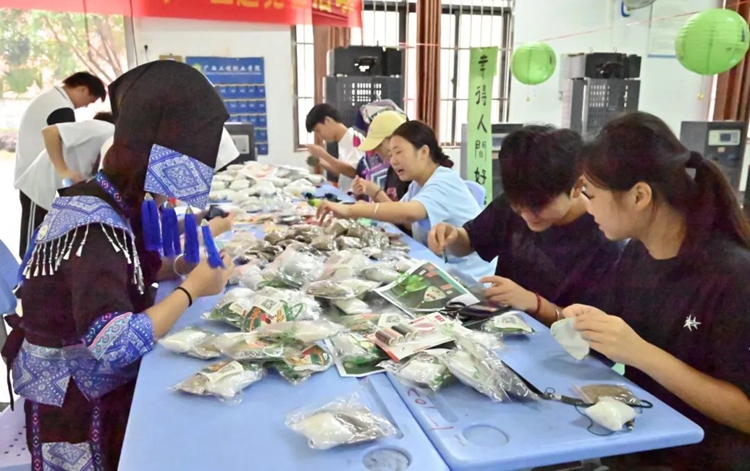 在多功能餐廳二樓,師生們齊聚一堂,親手體驗(yàn)包粽子的樂(lè)趣。在經(jīng)驗(yàn)豐富的老師或同學(xué)的指導(dǎo)下,大家捋粽葉、填糯米、加餡料、裹緊實(shí)、扎線繩,一道道工序有條不紊。