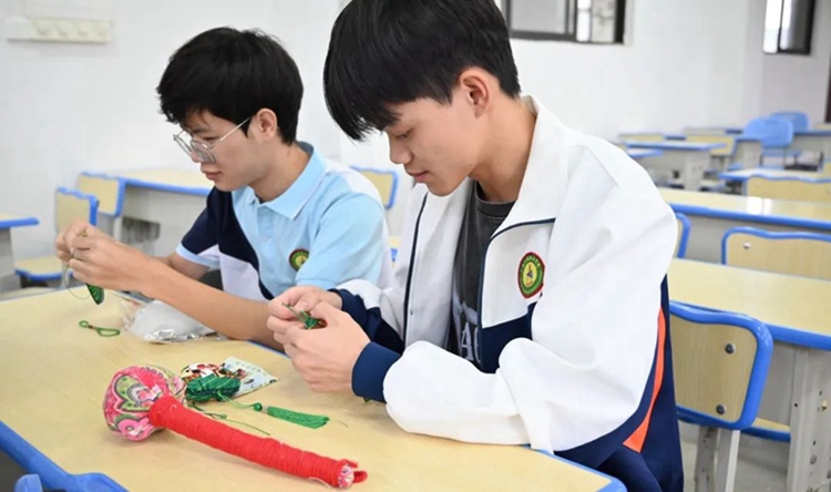 同學(xué)們興致盎然地縫制著寓意驅(qū)邪避疫的香包,一針一線傳遞著安康祝福。
