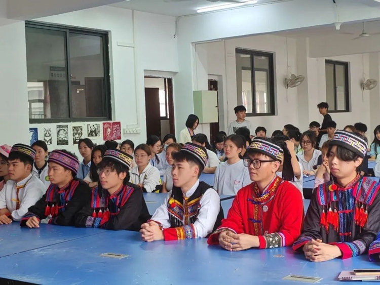 圖為藝術(shù)設(shè)計(jì)學(xué)院黨支部書記、院長(zhǎng)覃鳳姣介紹端午節(jié)文化
