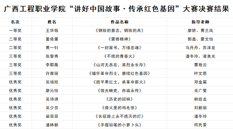 此次紅色故事大賽的成功舉辦,不僅為廣大學(xué)生提供了展示自我、交流學(xué)習(xí)的平臺(tái),更讓紅色基因在校園中落地生根、開(kāi)花結(jié)果。同學(xué)們紛紛表示,將以革命先輩為榜樣,牢記初心使命,堅(jiān)定理想信念,努力成長(zhǎng)為有理想、敢擔(dān)當(dāng)、能吃苦、肯奮斗的新時(shí)代好青年,讓紅色血脈代代相傳。