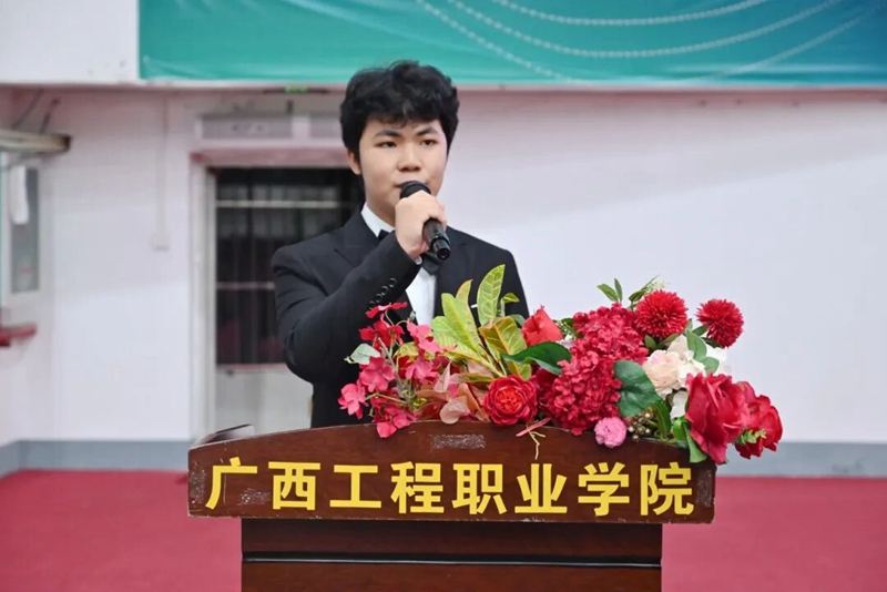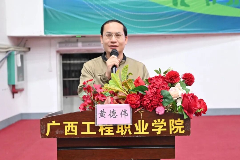 圖為副校長黃德偉宣布廣西工程職業(yè)學(xué)院2025年“新生杯”籃球大賽正式開始