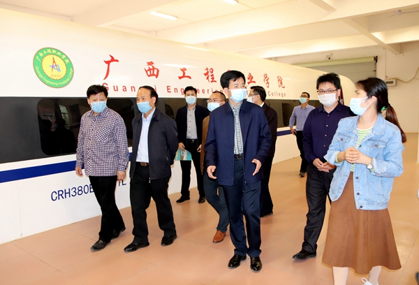 2020年4月8日下午,百色市委常委、統(tǒng)戰(zhàn)部部長羅試堅來我校參觀調(diào)研,指導(dǎo)學(xué)校開學(xué)準備工作及疫情防控工作。平果縣委常委、統(tǒng)戰(zhàn)部部長李俊整,平果縣大學(xué)園區(qū)黨工委書" />