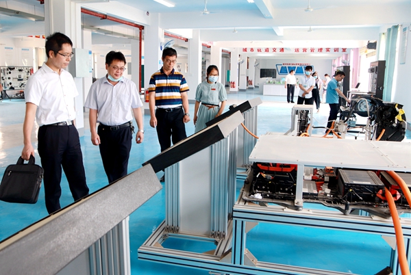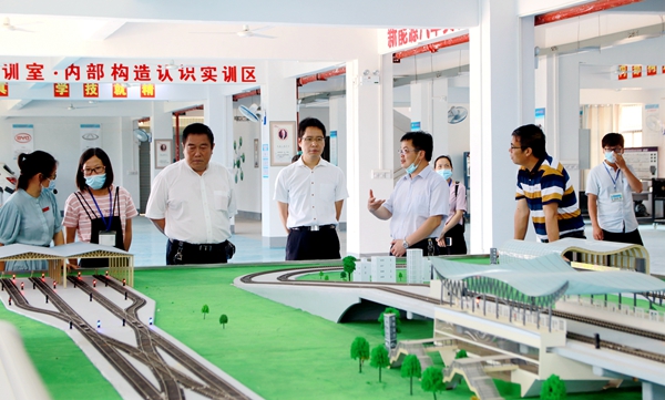 廣西賀州職業(yè)學院黨委書記呂泰松一行在方仕英書記、唐林校長的陪同下,參觀了學校3D打印創(chuàng)新教學實訓室、工業(yè)機器人實驗實訓室、動車軌道模擬綜合實訓室、新能源汽車實訓室等各二級學院實驗實訓室。