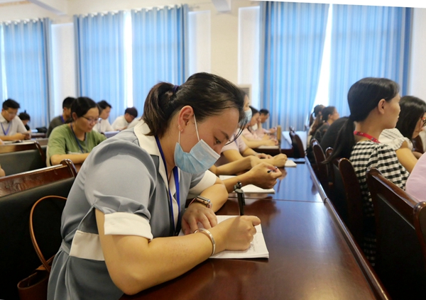 行政人員認真聽取報告做學(xué)習(xí)筆記 在“強化意識,提升能力,爭當(dāng)學(xué)校健康發(fā)展的實干者和推動者”專題學(xué)習(xí)中,羅艷妮副校長要求全體行政人員要“強化四個意識,提升四個能力”,做到:強化大局意識,爭當(dāng)“參謀助手”;強化責(zé)任擔(dān)當(dāng)意識,爭當(dāng)“行家里手”;強化溝通配合,爭當(dāng)“協(xié)調(diào)高手”;強化創(chuàng)優(yōu)爭先意識,爭當(dāng)“創(chuàng)新能手”。她最后指出,只要全體行政人員堅定目標(biāo)、腳踏實地,勇挑重擔(dān)、主動作為,從現(xiàn)在做起,從點滴做起,從崗位工作做起,始終把心思集中在“想干事”上,把能力發(fā)揮在“會干事”上,把力量凝聚在“干成事”上,就一定能夠在奮力推進學(xué)校教育事業(yè)發(fā)展再上新臺階和實現(xiàn)升本目標(biāo)的工作業(yè)績和實績,收獲成長、成功。
