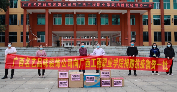 工程與藝術(shù)設(shè)計學(xué)院2007級電腦藝術(shù)設(shè)計專業(yè)校友、廣西名藝品味裝飾公司總經(jīng)理張遠(yuǎn)水向母校捐贈防控物資