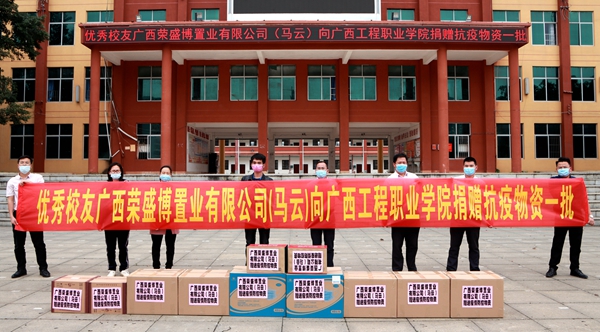 2020年4月13日,我校經(jīng)濟管理學(xué)院2009級市場營銷專業(yè)校友、廣西榮盛博置業(yè)有限公司董事長馬云,2008級國際經(jīng)濟與貿(mào)易專業(yè)校友、廣西百色藝品梧桐文化有限公司總經(jīng)理黃雅潔及工程與藝術(shù)設(shè)計學(xué)院2007級電腦藝術(shù)設(shè)計專業(yè)校友、廣西名藝品味裝飾公司總經(jīng)理張遠(yuǎn)水等多位校友分別向?qū)W校捐贈疫情防控物資,助力學(xué)校新冠肺炎防控疫情工作和開學(xué)準(zhǔn)備工作。