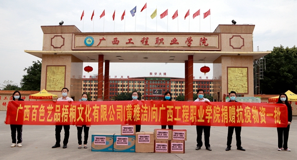 2008級國際經(jīng)濟與貿(mào)易專業(yè)校友、廣西百色藝品梧桐文化有限公司總經(jīng)理黃雅潔向母校捐贈防控物資