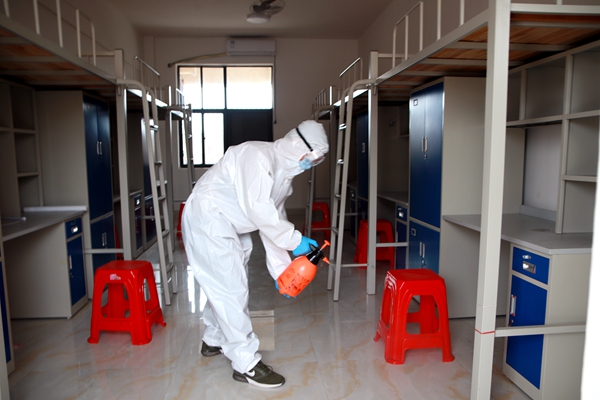 “報告老師,我們宿舍一名同學(xué)體溫37.5℃,且出現(xiàn)乏力癥狀!”輔導(dǎo)員接到學(xué)生宿舍舍長電話后,立即趕往現(xiàn)場進(jìn)行處理,并通知宿管人員暫時關(guān)閉宿舍樓進(jìn)出通道。學(xué)校疫情防控領(lǐng)導(dǎo)小組、學(xué)生工作處值班領(lǐng)導(dǎo)接到匯報后趕往現(xiàn)場。保衛(wèi)處工作人員負(fù)責(zé)維護(hù)現(xiàn)場秩序,防止人員外出;校醫(yī)復(fù)檢學(xué)生體溫,如有異常,立即通過專用就診通道將學(xué)生帶到獨(dú)立的隔離觀察點(diǎn),詢問學(xué)生14天內(nèi)活動軌跡及接觸情況,立即報告學(xué)校領(lǐng)導(dǎo),學(xué)校立即向市、區(qū)防控指揮部報告;宿管員負(fù)責(zé)封閉發(fā)熱學(xué)生宿舍并進(jìn)行消毒處理,同住學(xué)生進(jìn)到六號宿舍樓隔離居住。發(fā)熱學(xué)生體溫異常且情況嚴(yán)重,聯(lián)系平果市第一人民醫(yī)院,并使用學(xué)校疫情隔離車走隔離通道送至平果市第一人民醫(yī)院。