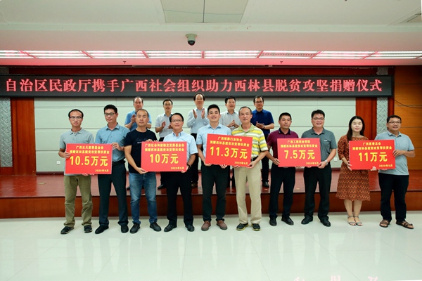此次調(diào)研活動以實地走訪和座談會方式進行?;顒邮紫扰e行“自治區(qū)民政廳攜手廣西社會組織助力西林縣脫貧攻堅捐贈儀式”,我校捐贈7.5萬元的脫貧攻堅幫扶資金,資助西林縣八達鎮(zhèn)周幫村15戶因家庭經(jīng)濟困難面臨輟學的貧困學生。