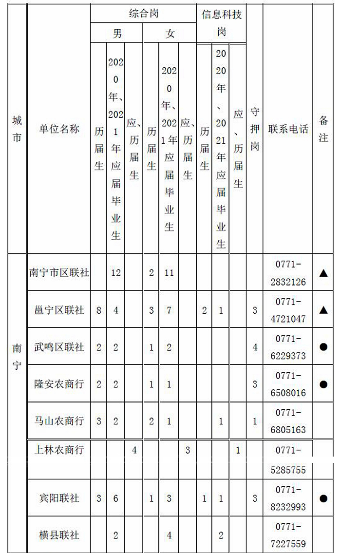 (4)報(bào)考南寧市區(qū)聯(lián)社綜合崗的,本科學(xué)歷的應(yīng)聘人員應(yīng)為國(guó)內(nèi)雙一流高校畢業(yè)或2020年QS世界大學(xué)排名前500名院校畢業(yè),研究生學(xué)歷的應(yīng)聘人員本科和研究生階段應(yīng)均為普通全日制畢業(yè)。