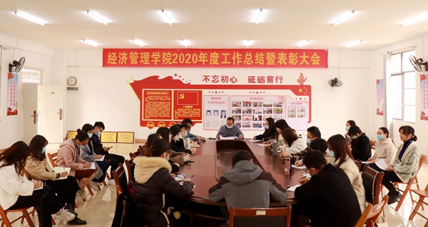 為了總結(jié)工作成績(jī),樹(shù)立典型,表彰先進(jìn),同時(shí)部署2021年度工作,經(jīng)濟(jì)管理學(xué)院于2021年1月21日下午在學(xué)院會(huì)議室舉行2020年度工作總結(jié)暨表彰大會(huì)。校黨委宣傳部部長(zhǎng)、副校長(zhǎng)彭高彬出席大會(huì)并講話。經(jīng)濟(jì)管理學(xué)院全體教師參加了會(huì)議,大會(huì)由韋張惠老師主持。